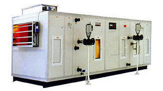 1.機(jī)組整機(jī)設(shè)計(jì)主要依據(jù)GB/T14294-93《組合失空調(diào)機(jī)組標(biāo)準(zhǔn)國家標(biāo)準(zhǔn)》參照國內(nèi)外同類產(chǎn)品技術(shù)資料。 2.采用部件,組件出廠,現(xiàn)場組合,運(yùn)輸、安裝方便,箱體外殼采用復(fù)合彩鋼保溫板,夾心層為阻燃型聚苯乙烯發(fā)泡板,防銹耐腐,保溫性能極佳,從而達(dá)到了節(jié)能、高效、密封、美觀、質(zhì)輕的要求。 3.機(jī)組設(shè)有新回風(fēng)混合與過濾段、新回風(fēng)混合段、初效過濾段、二次回風(fēng)段、表冷擋水段、蒸氣加熱段、干蒸氣加濕段、電加濕段、風(fēng)機(jī)段、中效過濾段、均流段、消聲段、風(fēng)機(jī)送風(fēng)段等功能段,可供設(shè)計(jì)院及用戶根據(jù)空調(diào)凈化工程不同要求靈活選用組合。 4.機(jī)組配套風(fēng)機(jī)選用國內(nèi)先進(jìn)的KKF型空調(diào)專用雙進(jìn)風(fēng)離心風(fēng)機(jī),具有效率高、噪音低、壓頭范圍寬等特點(diǎn),可滿足低壓頭降溫系統(tǒng),中壓頭恒溫系統(tǒng)和高壓頭凈化系統(tǒng)的需要。 5.表冷器采用銅管套鋁片,雙翻邊機(jī)械伸脹管,熱交換效率高,阻力小,風(fēng)機(jī)采用新型的KKF型空調(diào)專用風(fēng)機(jī),效率高,噪音低,風(fēng)壓穩(wěn)定,空調(diào)器額定風(fēng)量為10000-80000m3/h幾種形式,每種風(fēng)量均設(shè)有多種功能段可根據(jù)需要選擇。 | |